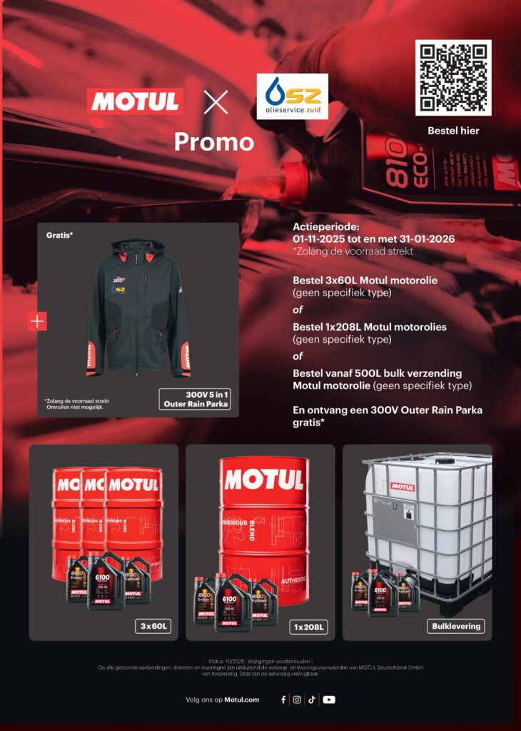 Bestel direct jouw Motul-olie bij je adviseur of via: [email protected] en ontvang de gratis 300V Outer Rain Parka!